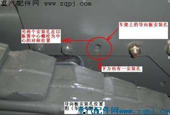3.導(dǎo)向板安裝示意圖(下圖),固定導(dǎo)向板的螺栓從車(chē)架內(nèi)側(cè)向外安裝?! ?/p>